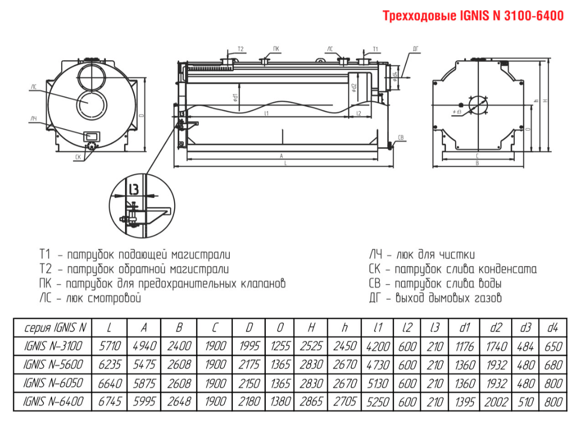 Технические характеристики водогрейного трёхходового котла для тепличных хозяйств ARCUS IGNIS N-6050
