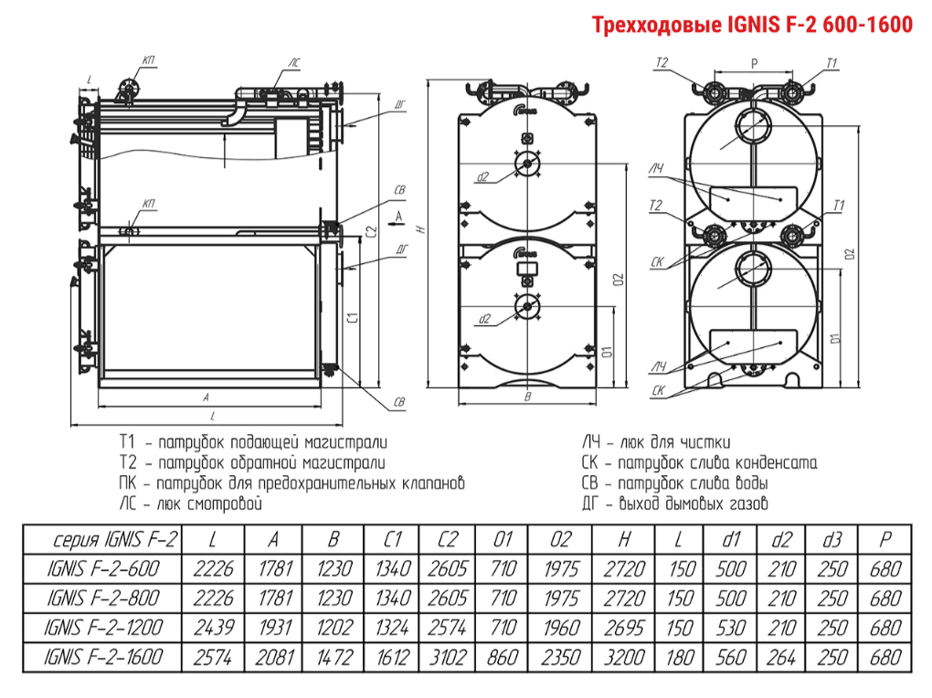 Технические характеристики модульного водогрейного трёхходового котла ARCUS IGNIS F-2-800